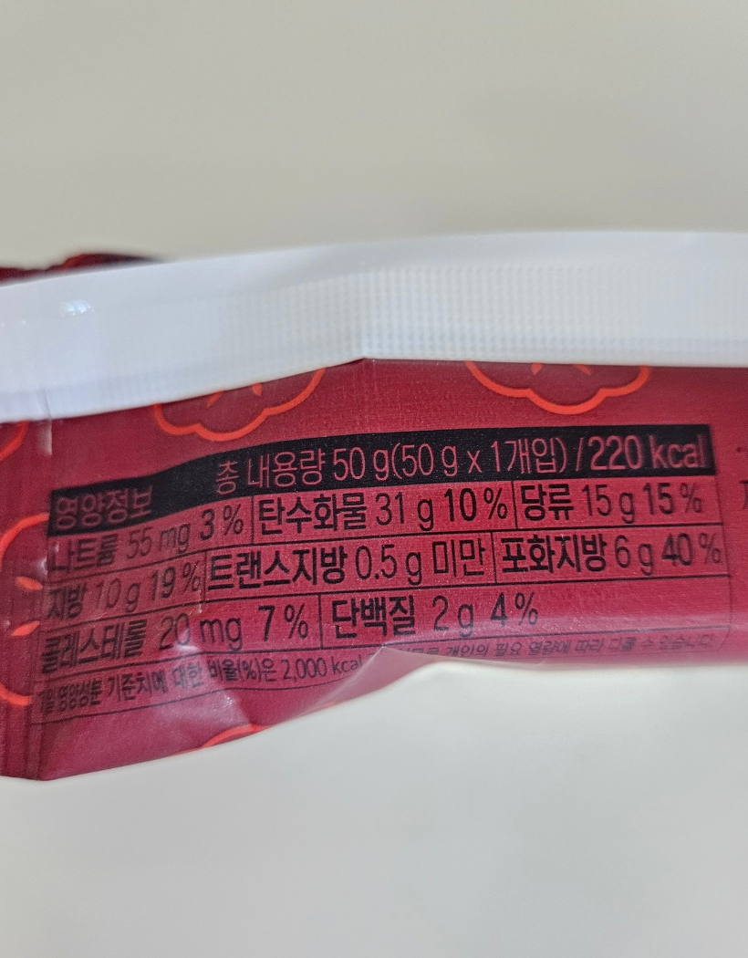 나트륨 55mg / 탄수화물 31g / 당류 15g / 지방 10g / 콜레스테롤 20mg / 단백질 2g